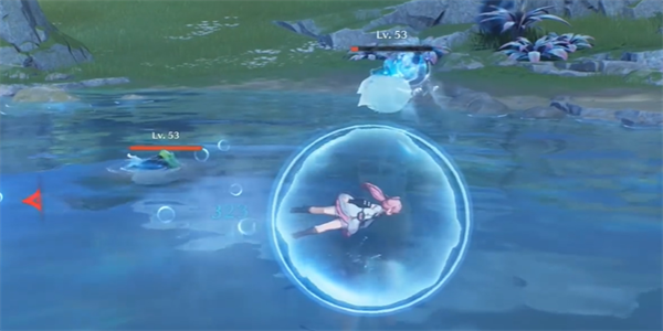 4、靠近河豚进行攻击,被河豚突出的泡泡包裹起来,就可以成功解锁成就了。