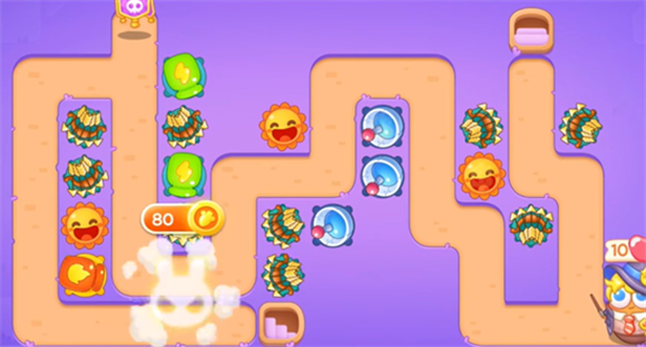 3、清理掉左边的道具放置炮台增加伤害,然后再清理掉右边的所有道具,最后打掉中间道具拿到全清。