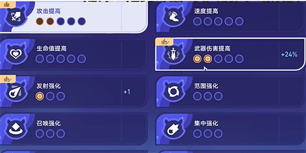 1、进入游戏属性重点要加攻击提高,武器伤害提高和发射强化,选错可以在左下角进行重置。