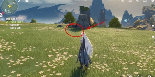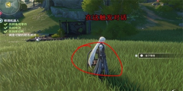 2、点击后来到机器人旁进行对话,需要我们去寻找残缺部件。