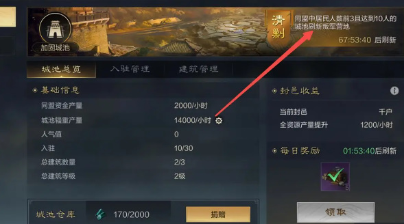1、清剿叛军有如下开启条件:同盟居民前三的城池,居民达到十个及以上,霸业阶段达到【割据一方】后才会刷新叛军营地。