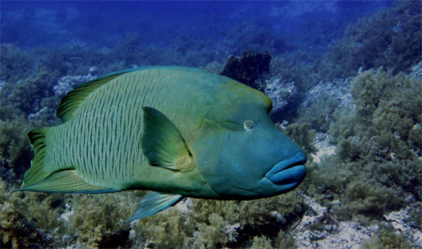 "苏眉鱼"是波纹唇鱼的俗称,其显著特征是额头隆起、嘴唇厚实,远远看去像是"眉骨高耸",因此得名"苏眉"。它们体型巨大、颜色鲜艳,是典型的珊瑚礁大型鱼类,在生态系统中具有重要作用。同时,因为数量稀少、繁殖慢,被列为珍稀保护物种,是海洋中备受关注的明星鱼类。