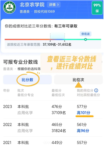 6. 根据个人位次初选院校,查看具体专业录取数据时需注意:
