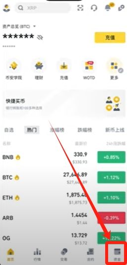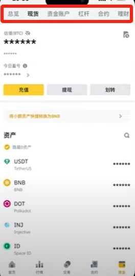 打开APP后点击底部【资金】按钮进入总览页面。现货账户与资金账户是本次操作涉及的两个主要账户类型,发比购买的资产默认存放在资金账户,交易前需划转至现货账户。
