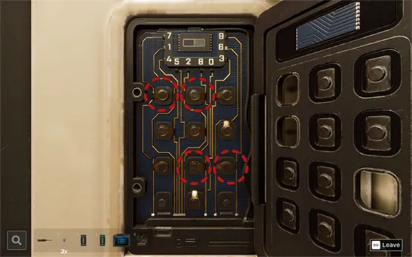 在里面,你可以重新连接键盘上的按钮,以便使用可用的按钮输入玻璃上写的密码。确保记住你把必要的数字重新连接到了哪些按钮,然后按三角形键继续。
