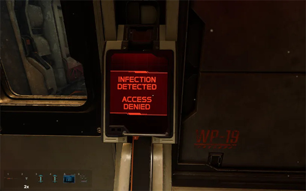尝试在气闸中扫描自己以进入下一个房间失败,因为检测到感染。