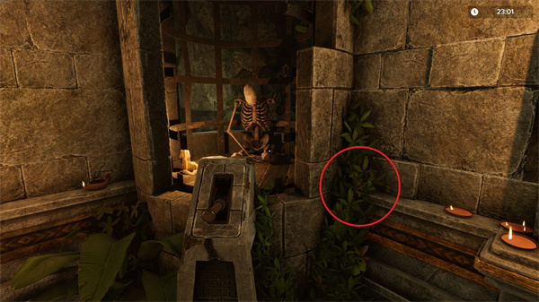 3、在你从中取出眼睛的骷髅前的空烛台里。