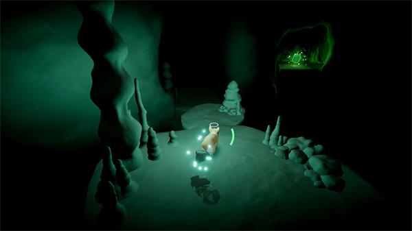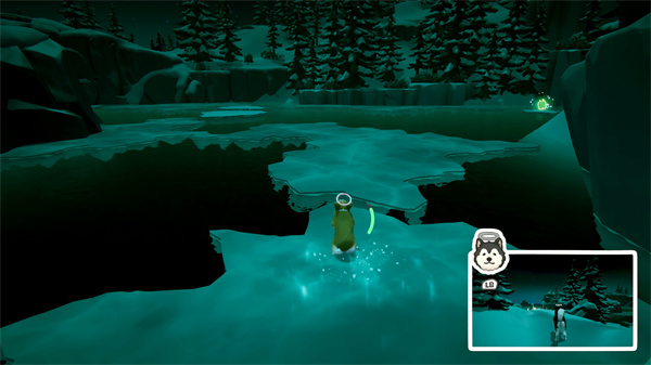 4、在雪山过了山峰与哈士奇一起同行的时候,会有段冰面跳台,能看到右边有瓶小狗补药,直行往右就能获得。