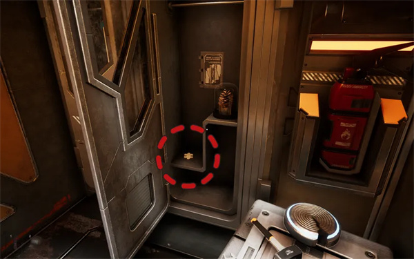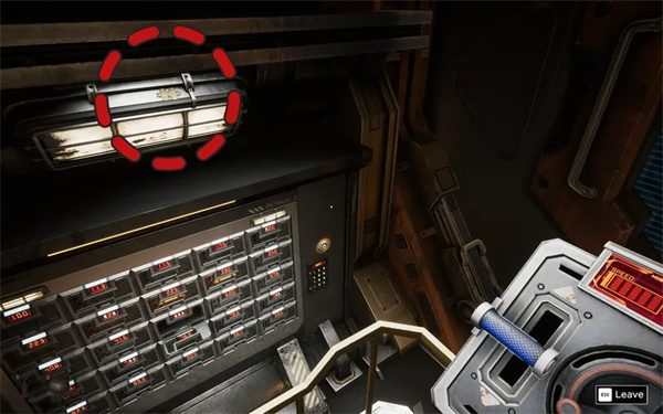 8、使用剪式升降机在小储物柜上方的灯上找到它。