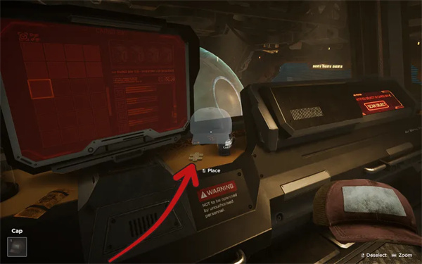 5、在楼上控制室的控制台上的帽子下面。