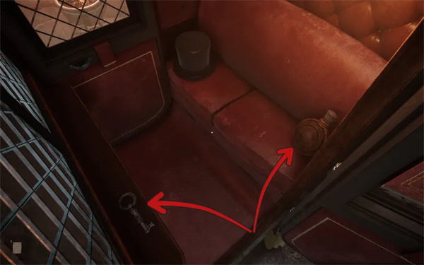面向马车右侧的窗户,擦掉冷凝水,可以看到对面窗帘上的图案。