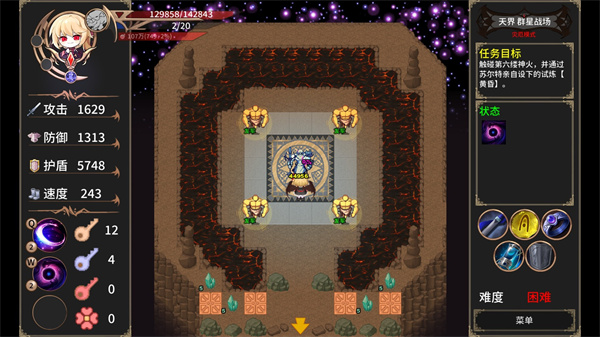 每个魔像需要填充2次。魔像分别位于魔女小屋外,整个“田”字型战斗区的左上、右上、左下、右下以及BOSS山洞内。