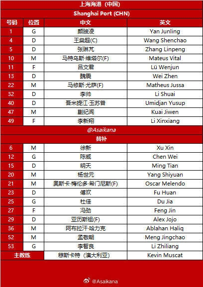 记者在社媒写道:蒋光太、莱昂纳多与加布里埃尔均未入选今晚亚冠比赛的名单。从俱乐部方面了解到,他们三人受到伤病的影响,均难以达到比赛要求。