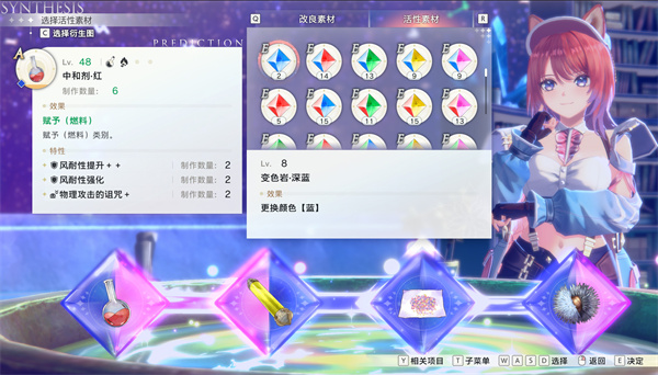 强化系统完全解锁后,可以使装备和使用道具突破上限99,强化道具等级上限为120,等级到达一定要求左边就会添加效果,等级越高效果的参数就会越高,强化过程与炼金追加道具类似,妖精和队伍角色参与,也有天赋颜色机制(也可以通过活性素材改变颜色),连接会继承能继承的特性,高级特性合成需要通过强化完成。选择强化过的道具会从道具回到强化前状态开始强化。