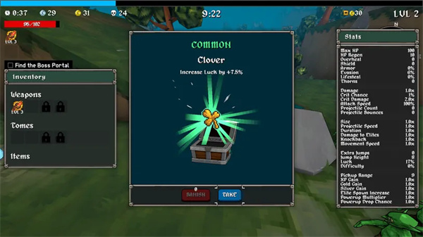 游戏中会出现选择升级运气的选项,但并不总是存在。可能会获得三种不同的奖励,例如增加闪避、获得护盾或增加攻击的击退。