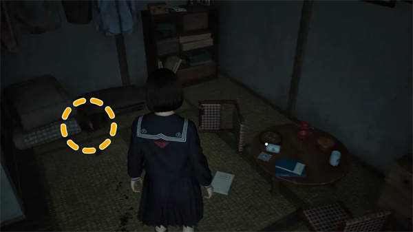 走进去时,你会看到从窗户流出的血迹。它会导致地板上的一个物体,您可以与之互动。