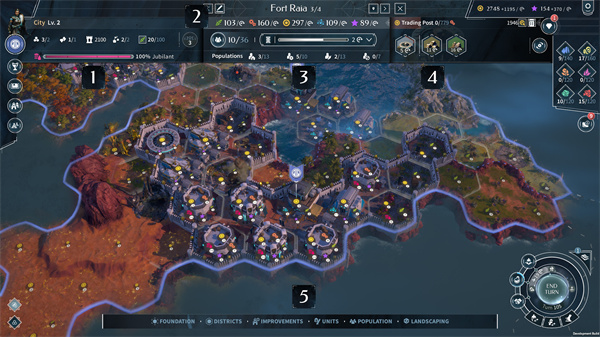 2、城市产量 - 每回合产生基础资源(食物、工业、尘埃、科学和影响力)的总量,主要由地区、人口、改进生成。