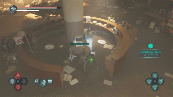 接待台的中央是一台电脑。与计算机交互以读取第一个条目,即可疑活动。关闭计算机后,可以访问日记中的可疑活动谜团。