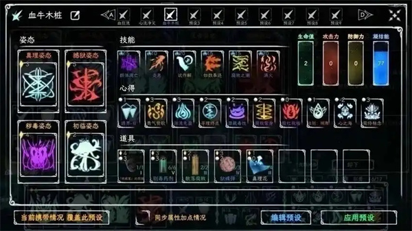 核心思路:依靠“中毒”“腐败”“灼烧”的1%最大血量倍率尽可能多的叠加buff来瞬秒boss或者打多回合打血牛。以下是buff命中率百分百的理想情况。