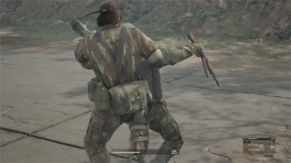 近距离战斗涵盖了 Snake 与触手可及的敌人互动的所有各种方式,非常适合帮助您对付多名警觉的士兵,或者在隐秘的环境中一次悄悄地使一名士兵丧失行动能力。你只能在装备特定武器的情况下完成有限且笨拙的近战动作,如果你想正确使用,你需要取消装备该武器。