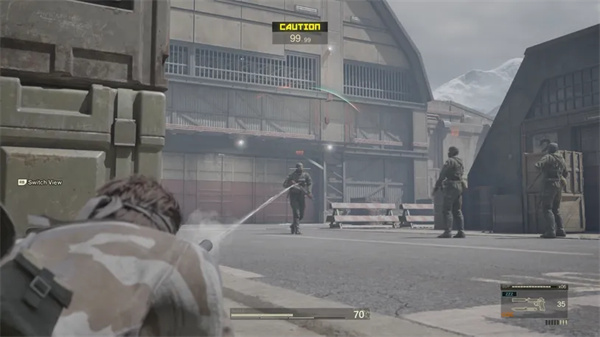 使用现代控件时,您现在可以以第三人称视角瞄准 Snake 的肩膀。这非常适合当您想快速开枪时,但子弹扩散比第一人称瞄准要不准确得多。蹲下或俯卧会在一定程度上提高你的瞄准能力,而以第一人称方式瞄准可以大大提高你的瞄准能力。要以第一人称瞄准,请随时点击R1,然后当你瞄准时,你将使用武器的瞄准具。