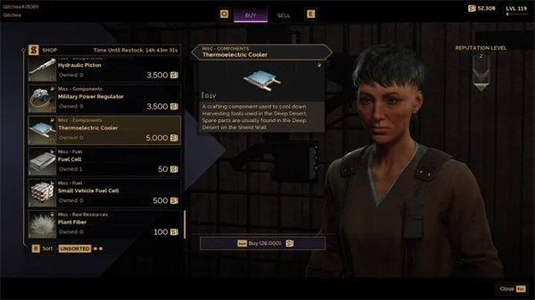 十字路口的佐伊是唯一出售资源的人。单个零件售价 5,000 索拉里。如果不想支付这笔费用,或者更愿意自己寻找材料,则需要前往深沙漠。