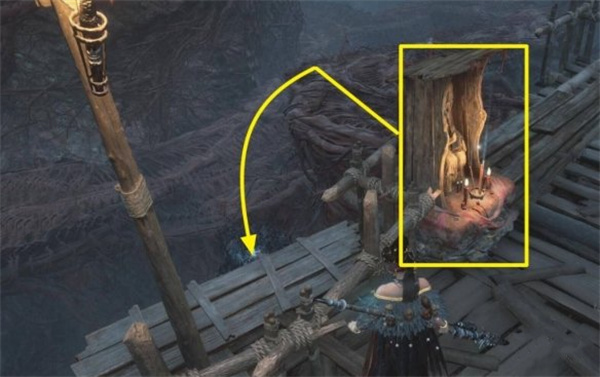 2、要是以前已经探索过此区域并开启了近路,那么直接从神龛【佛源镇 - 赤炼工坊】旁边的梯子爬上去,就能拿到这个玉佩。