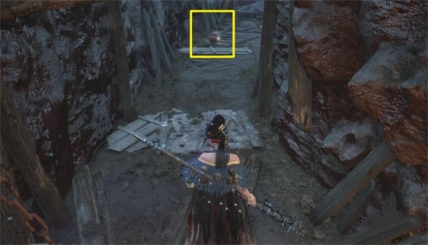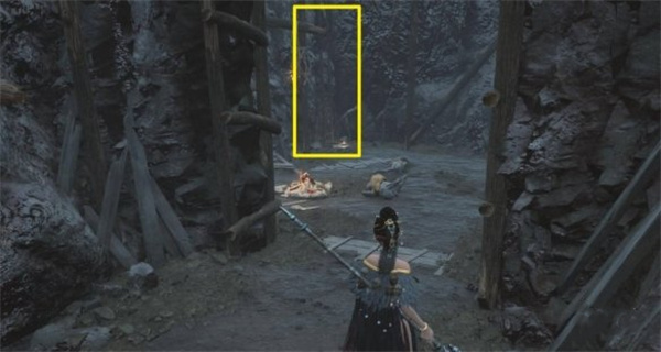 5、从黑色路段上的拾取物处往下层跳,要进入前方的山洞。得注意山洞里有阴人小怪。