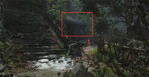 玩家到含光禅院区域的神龛,转身向后看,会看到一个被围墙包围的院子。