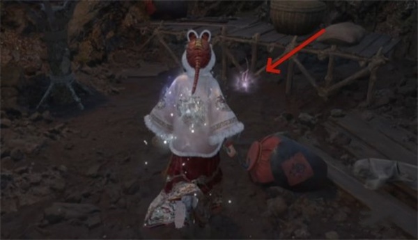 3、最里面可以看到一个紫色发光点,靠近拾取即可。