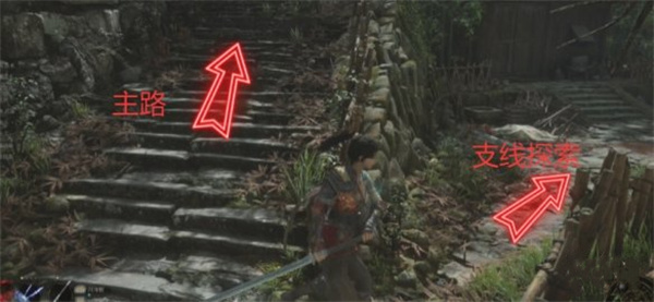 顺着路走就会出现两条路,往上走的路是主路,往右边走是支线,推荐大家先走支线先去探索。