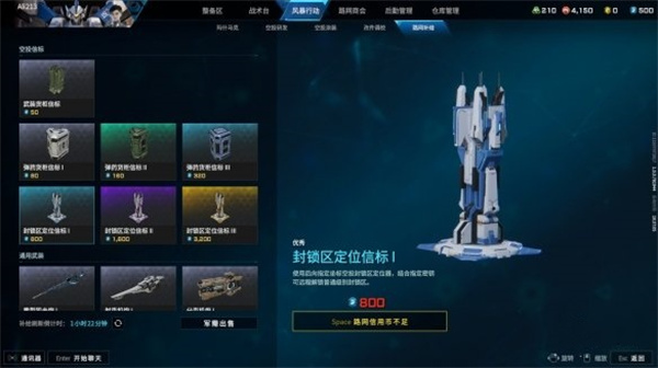 封锁区定位信标在路网补给中可购买获得,最基础的都需要花费800路网信用币购买。
