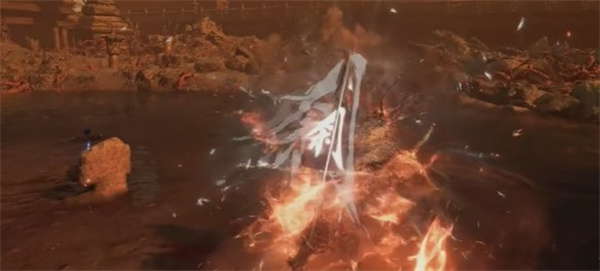 用神火长枪对着红蓝来一发的时候,红岚就会直接背对着我,在这个时候只要接一发重攻击,红岚就会直接被打出被处决的状态,非常好用。
