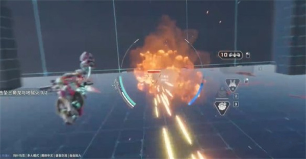 他吃了三个挡板之后会开始跑,此时追着他跑,停在他头上,最好锁定三角龙,从上面进行输出。