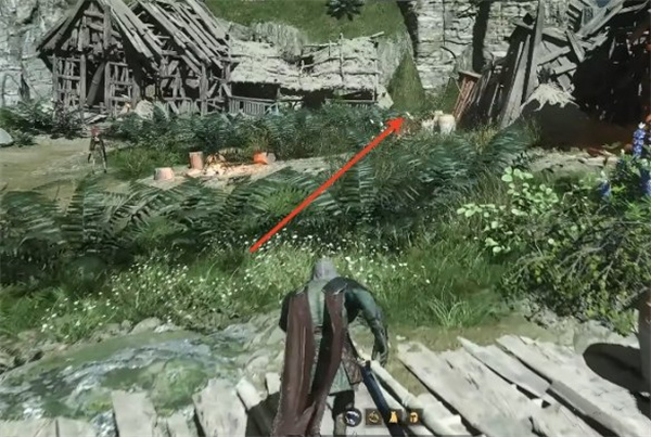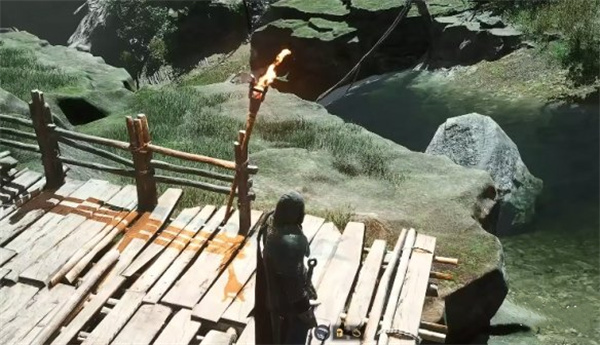 2、在这个木板桥的位置会遇到NPC,与之交谈。