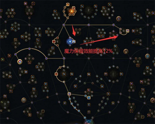 点出火焰专精下面的魔力专精,选择魔力保留效能提高12%。