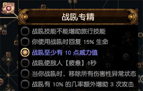 点出左下方的战吼专精,选择战吼至少有10点威力值。
