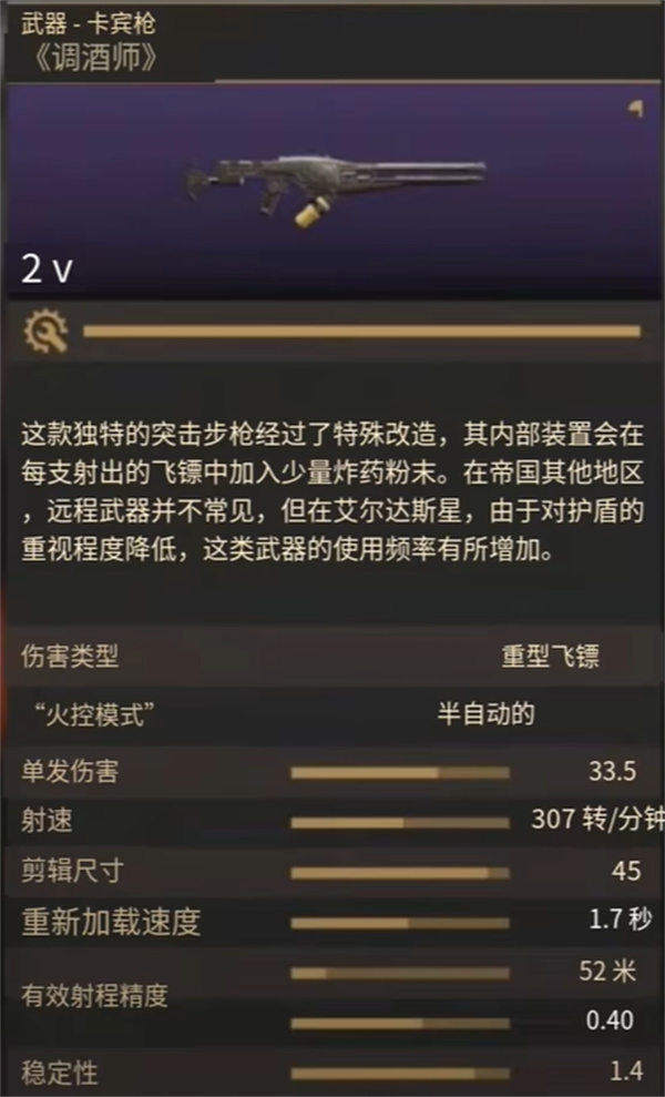 这款武器的单发伤害高达8.4,对于打一些护盾怪都很强的破盾效果,很适合近距离的对敌人输出。