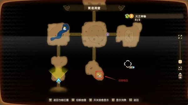 进入洞窟打开洞窟地图缩小,如图所示就是任务所需矿石。