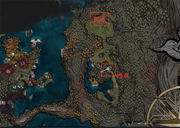解锁飞行之后再来。滚球的起点和终点见下图,追着它跑到结界上然后打掉就行。