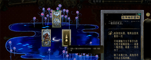 4.夜的栖息地拜姐出现,不放卡拜玲耶入队,放杀戳卡+5灵视,放纵欲卡+1灵视拜玲耶入队+1妻子的不满。