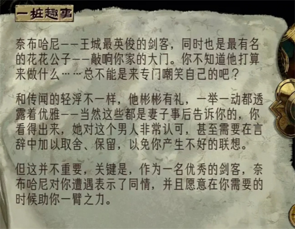 4、之后朱娜会死,触发奈布哈尼的浪子的悲哀事件,让主角卡带思潮去就可以摘掉近卫标让他入队了。