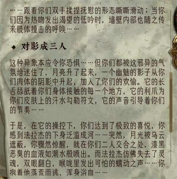 1、在浴场洗澡的时候会随机触发阴暗的宅邸,主角可以进去冒险。