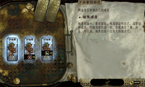 3、第一次审视需要战斗的痕迹≥2,此时战斗+1,体魄+1,否则阿迪莱离队,阿迪莱线中断,不再有后续事件。