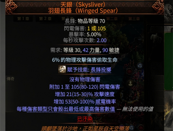 武器词缀:攻击速度>力量>击中敌人回生命>晕眩门槛>闪电伤害