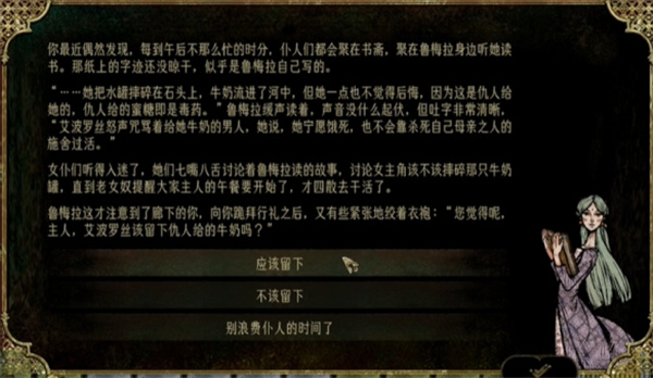 2、复仇线:侧重谋反与暗杀,选择“帮助她”并完成复仇事件。