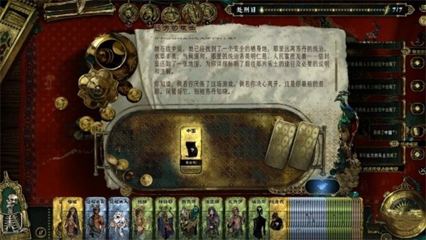 花费一金币,获得卡【中国】,金色品质,带有地点tag,可以作为仪式“逃离苏丹的游戏”的条件。
