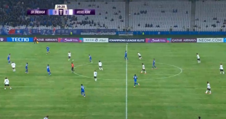 申花开场两获良机!路易斯门前包抄+头球攻门,均被神户球员挡出