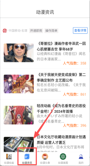 2、点击"动漫资讯"图标,获取最新的动漫新闻和信息。
