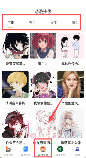 3、点击"动漫头像"图标,选择不同风格的动漫头像。